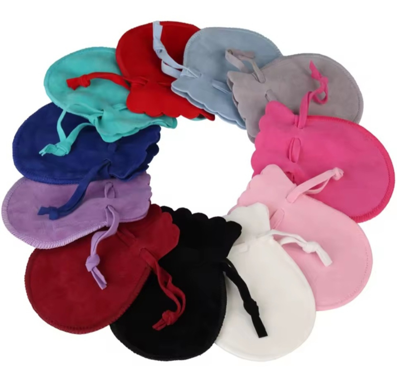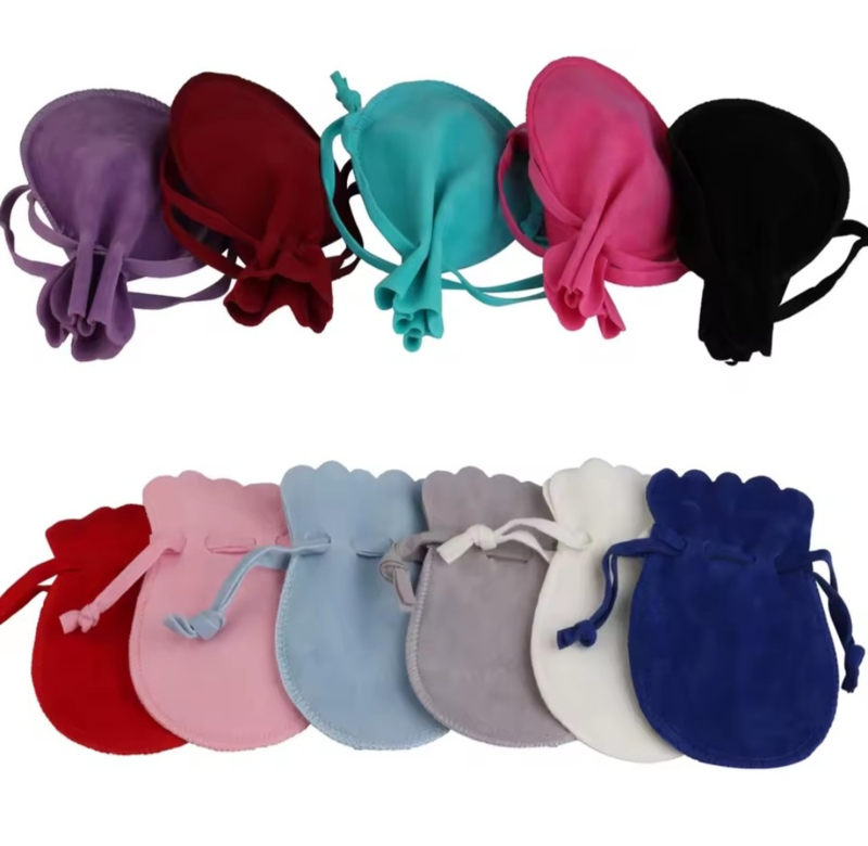 5 LUXE velours / fluwelen zakjes Lila rond S