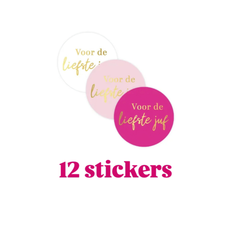 12x Sticker - Voor de liefste juf - 4cm - sluitsticker - cadeausticker - Juffen - leerkracht -einde schooljaar - vakantie - juffendag