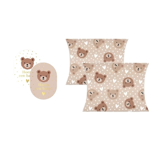 Deze lieve inpakset voor het verpakken van geboorte cadeautjes bestaat uit: